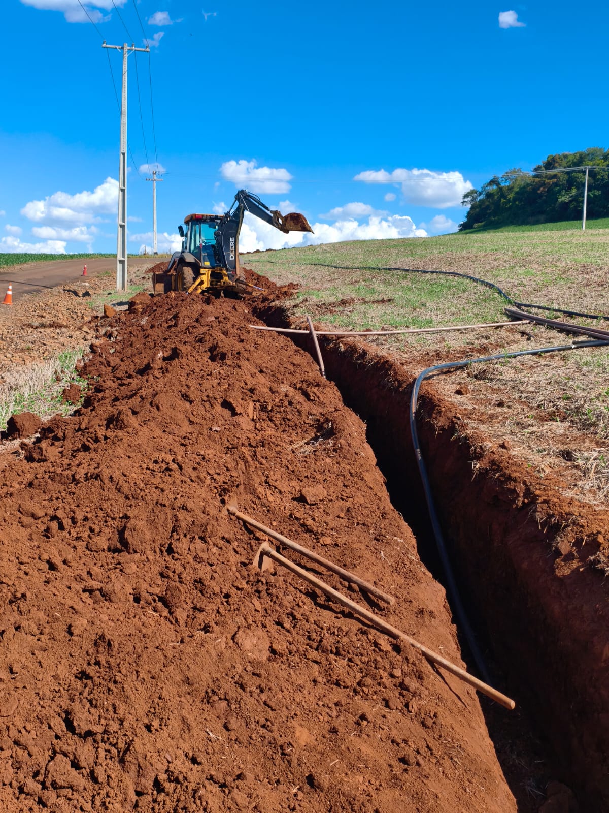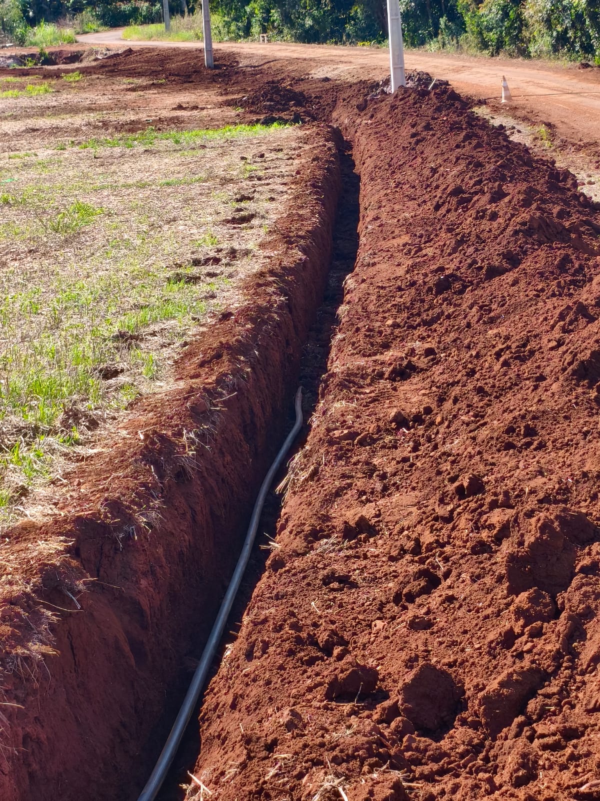 Nesta primeira etapa foram abertas as valetas e instalados os canos que vão abastecer a estação elevatória e a futura caixa d’água. Ao mesmo tempo, já estão sendo colocadas as tubulações que irão levar a água diretamente até as residências da comunidade, estruturando toda a rede de distribuição.